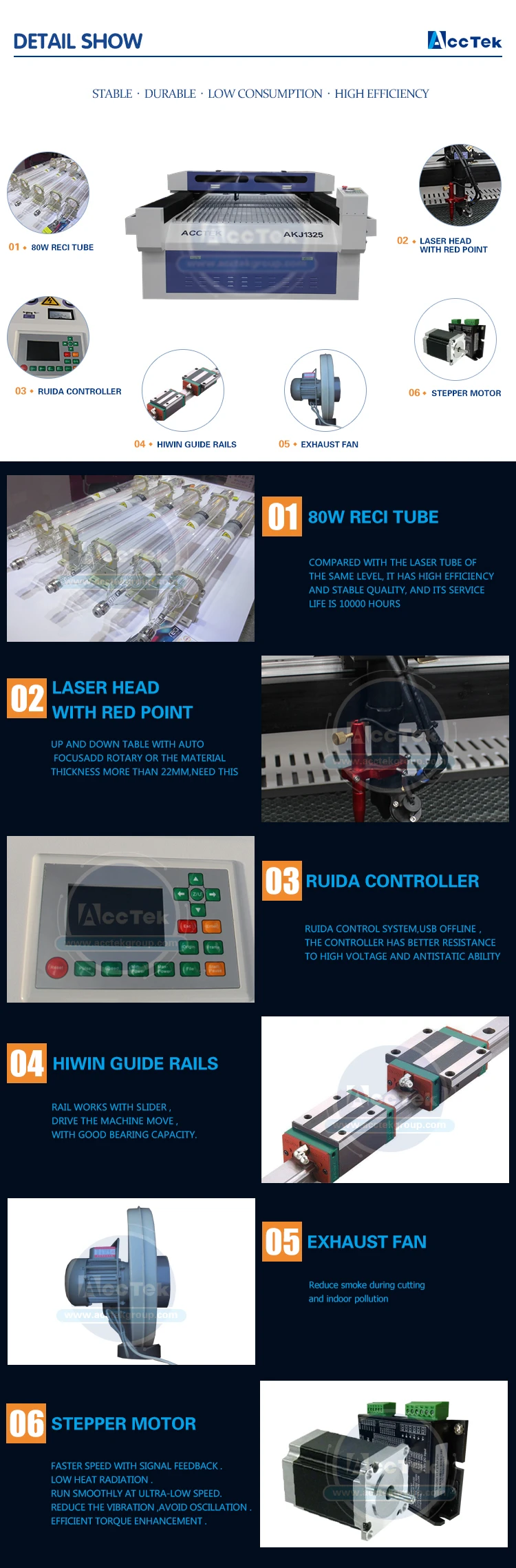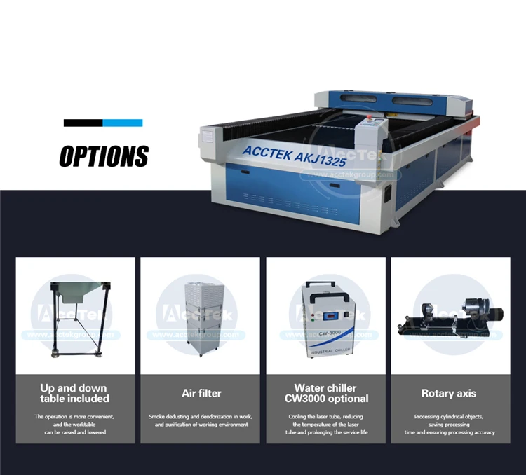 AccTek 90 Вт 100 Вт 150 Вт Co2 станок для лазерной резки AKJ1325 с ножом/сотовым столом