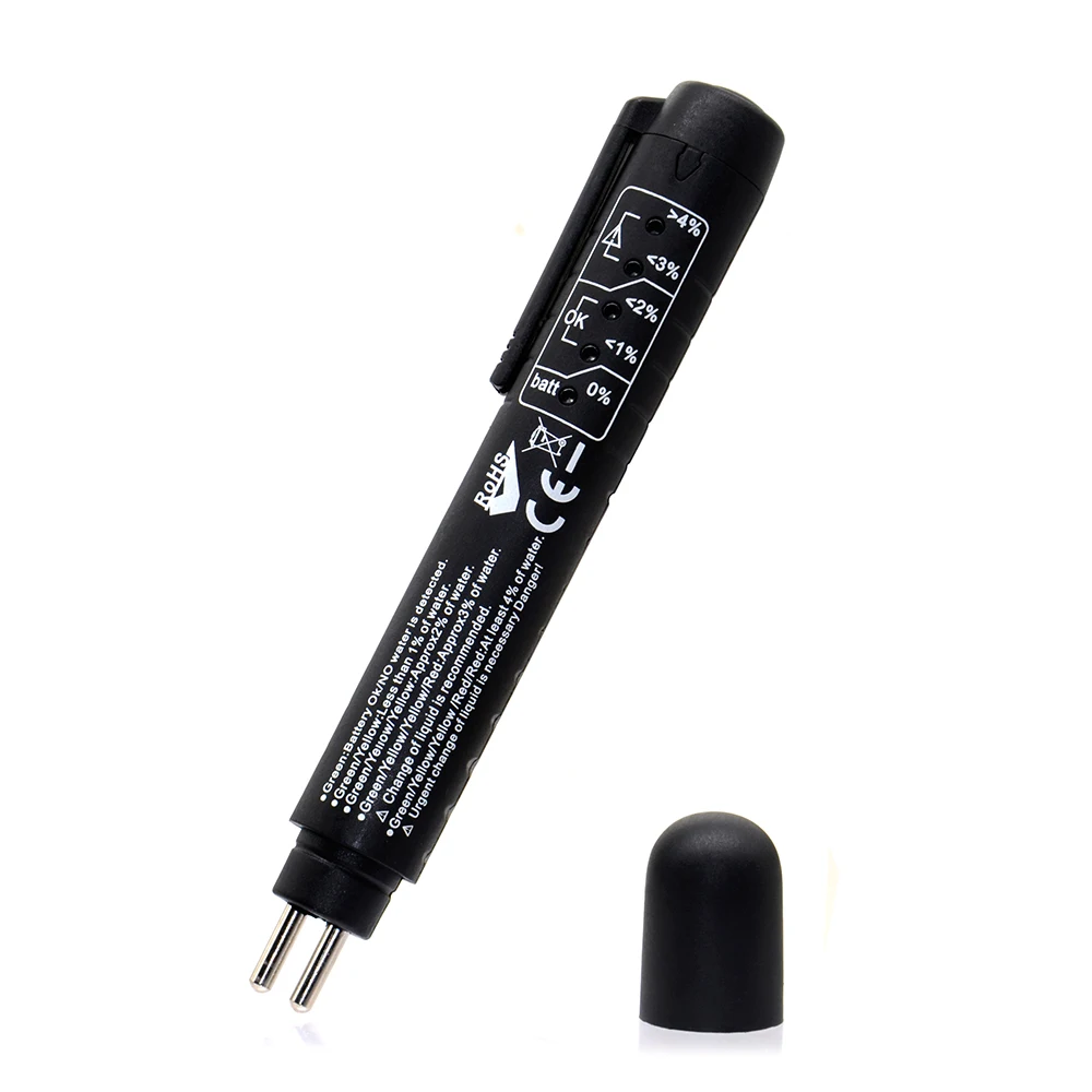 Ручка обнаружения тормозной жидкости основана на изменении проводимости для определения влажности тормозной жидкости. Он четко показывает степень влажности, содержащую светильник-излучающий диод, высокое содержание влаги приведет к более низкой температуре кипения, влияет на эффективность торможения. Красный цвет означает, что Тормозная жидкость нуждается в немедленном замене, зеленый цвет представляет хорошее состояние, желтый цвет означает, что состояние приемлемо, но вскоре заменяется.