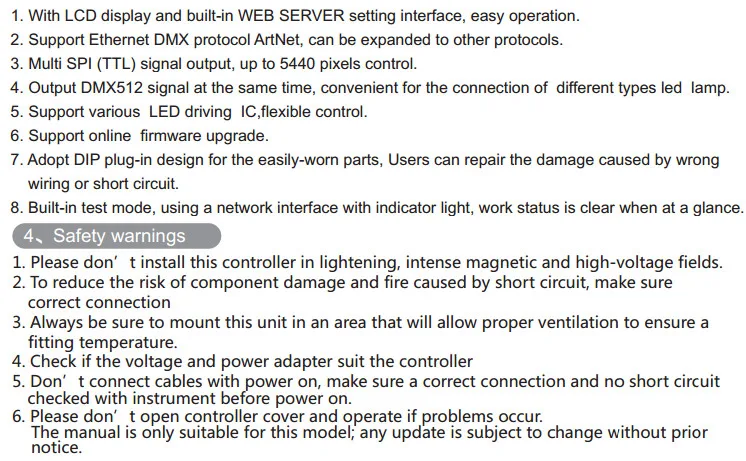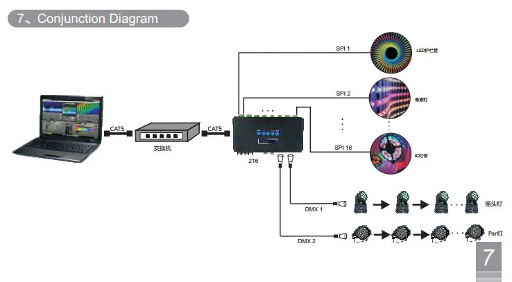 2. Поддержка протокола Ethernet DMX ArtNet, может быть расширена до других протоколов.