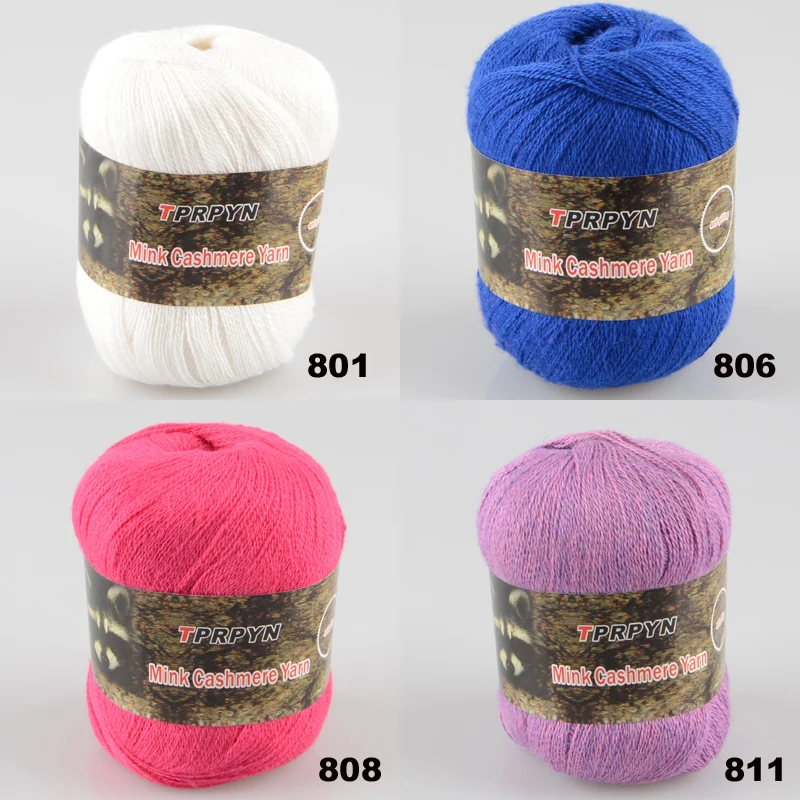 Бренд: TPRPYN Вес: около 50 г, есть 0 до 5g ошибка Длина около: 500 м (545yd) Материал: Норковый кашемир 98%, пашм 2% Толщина около: 0,75 мм Размеры: 2 Размер иглы: № 14 Размер вязального крючка: 1,5 мм Катышки из Анита: Да Никогда не выцветает: Да