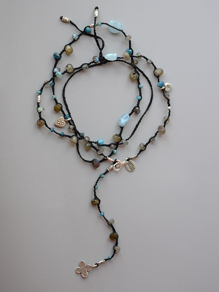 - Материал: цветной лабрадорит, морской сапфир, Тегеран, кристалл, бусина из серебра 925 пробы и крест кулон, пряжка, например, нейлоновая нить
