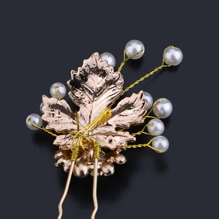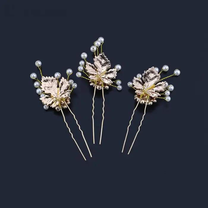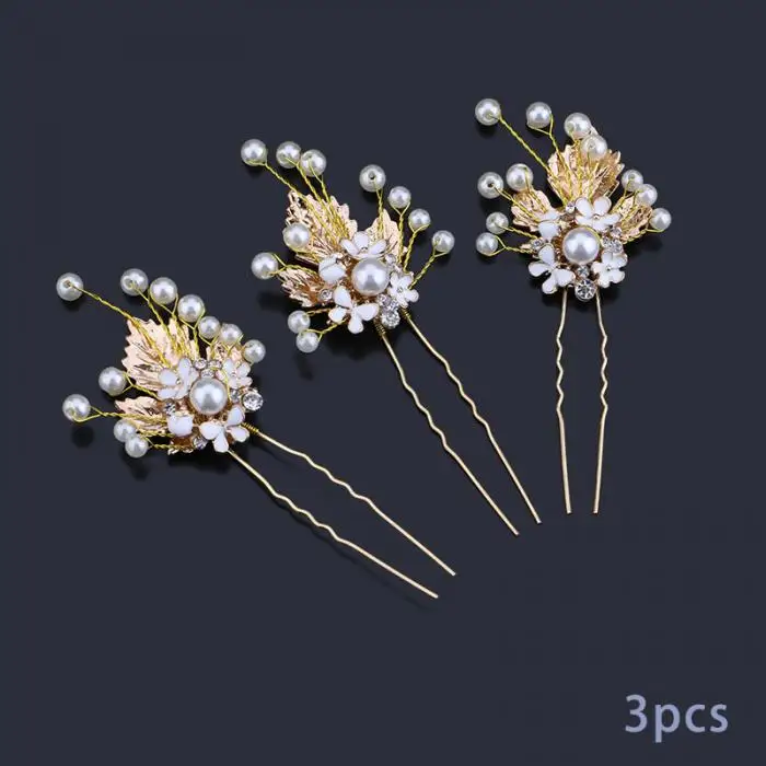 3Pcs Gold Pearl Rhinestone Bridal Hair Pin Clip Hairpin Women Leaf Hair Pin Headpiece Bridal Hair Jewelry Wedding Accessories SL