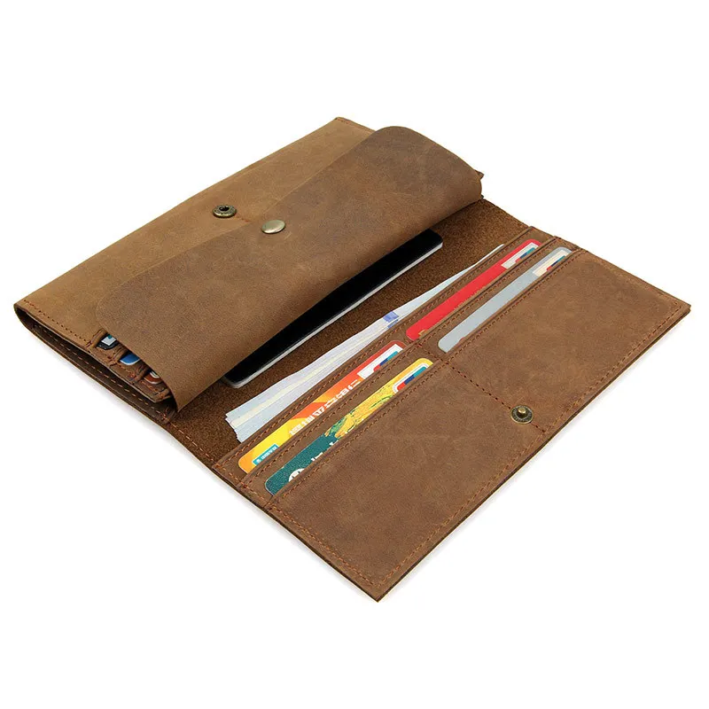 Винтажные кожаные кошельки Crazy Horse для мужчин, брендовый двойной длинный кошелек с карманом для монет, кошелек для паспорта ручной работы, клатч 8110 -Материал: первый слой из натуральной коровьей кожи/топ из кожи crazy horse -Размеры: 19x10x2 см -Цвет: коричневый -Вес: 0,15 кг -Теплые советы: ★Так как светильник для съемки, технология и отображение причин, объектов и фотографий могут иметь некоторые отличия, пожалуйста, имейте в виду. ★Из-за ручного измерения на рисунке приведены только для справочных целей. Если у вас есть погрешность в 1-2 см, пожалуйста, не покупайте. ★Для кожи crazy horse легко царапается при ежедневном использовании. Но кожа будет ярче по дням. Это дикий и винтажный стиль. Если вы не против царапин, это не лучший выбор для вас, чтобы купить этот стиль кошелька.