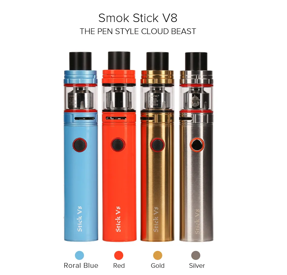 Аккумулятор Stick V8-3000 мАч-1 шт. 1 большой детский бак TFV8 1 x V8 Baby M2 0,15 Ом двухъядерный (предустановленный) 1 двухъядерный V8 Baby M2 0,25 Ом 1 х USB кабель 1 х Руководство Запасные части