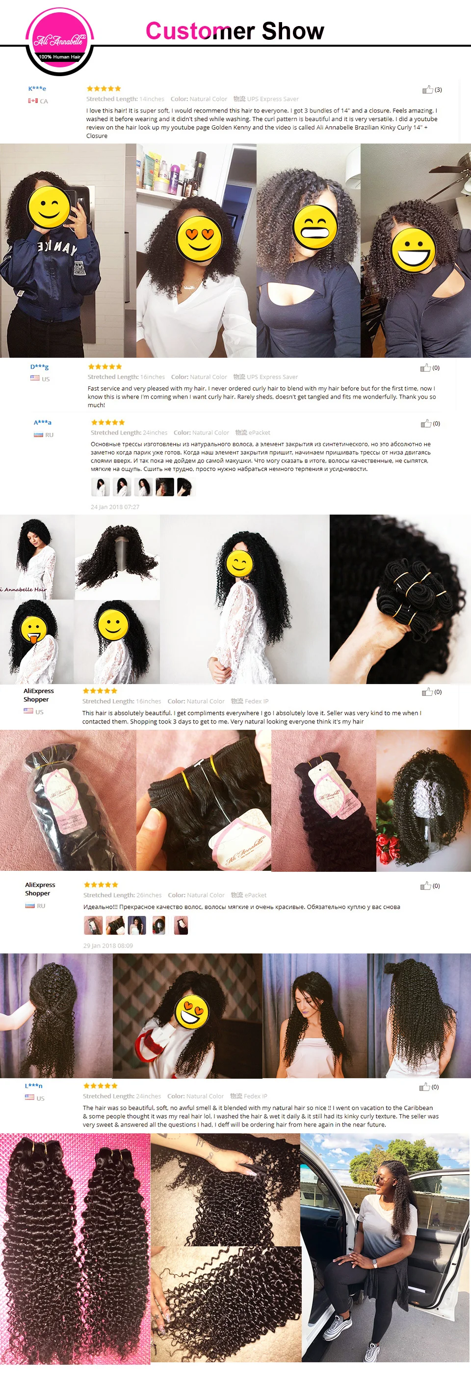 ALI ANNABELLE волосы бразильские кудрявые вьющиеся волосы 100% натуральные кудрявые пучки волос 1/3/4 шт натуральный цвет Remy Вьющиеся волосы пучки