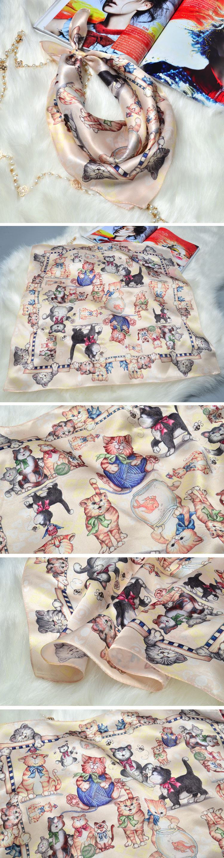 HANSCARF милые кошки напечатаны 100% шелковый шарф, женские маленькие квадратные Настоящие шелковые шарфы галстук обертывания и Сумки Шарфы