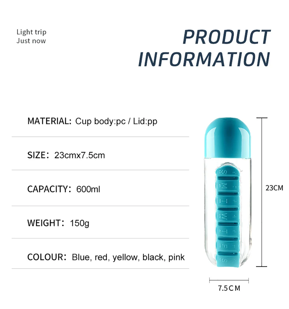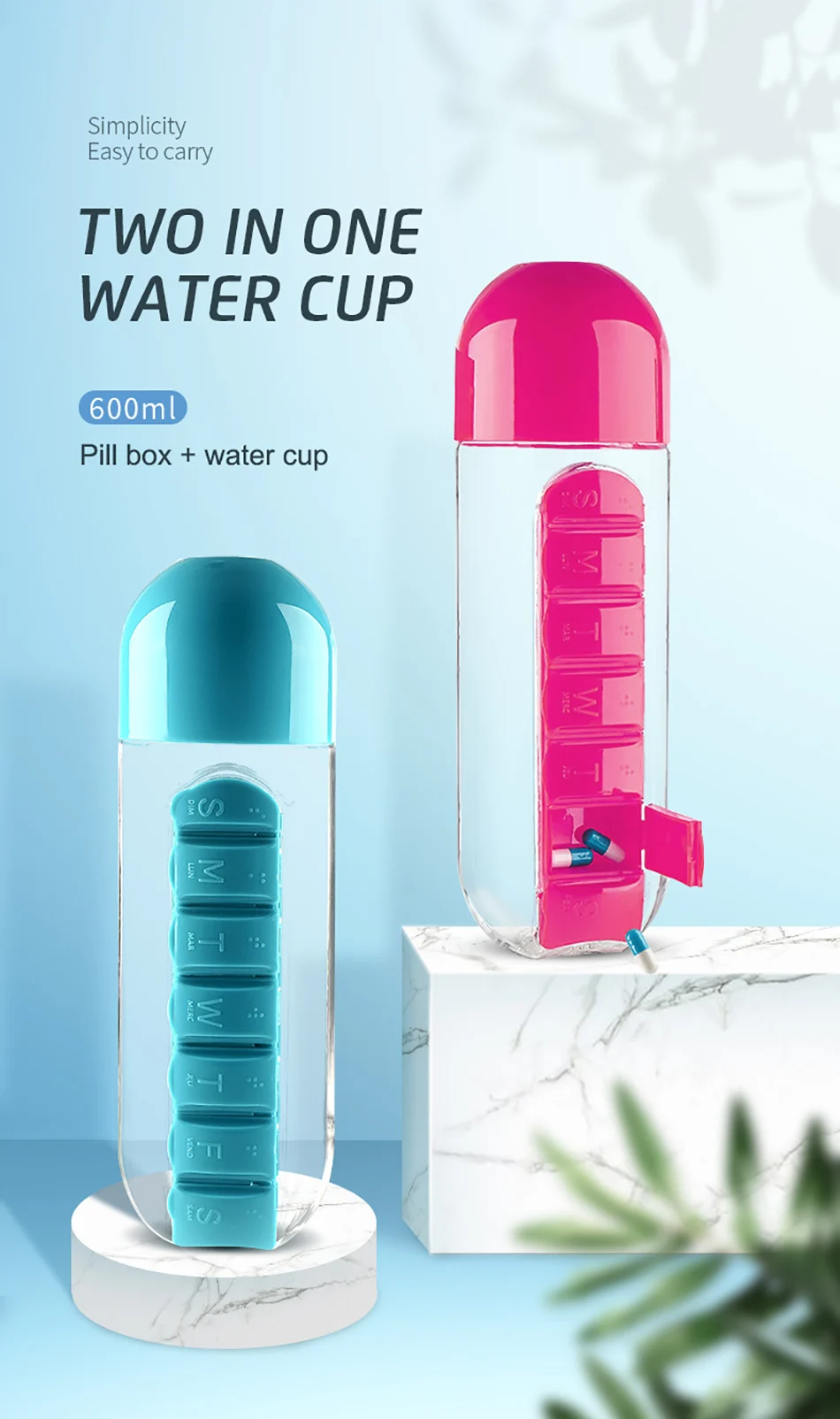 BAISPO 600 мл бутылка для воды спортивная комбинация ежедневная коробка для таблеток Органайзер питьевой запаянный герметичный пластиковый флакон