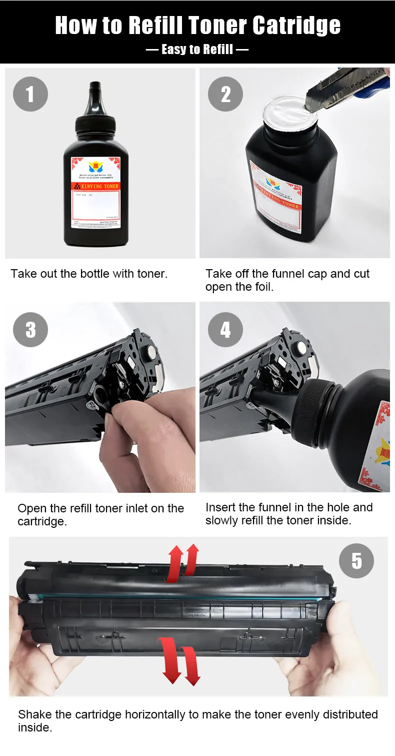Мы не рекомендуем делать пополнение самостоятельно. Пожалуйста, купите совместимый тонер-картридж у нас