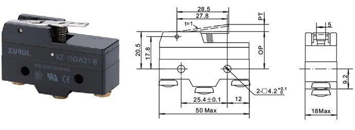 модель: XZ-15GW21-Bмонтажного отверстия расстояние: 25.4 мммонтаж размер отверстия: 4.2 ммконтактная форма: открывать и закрывать