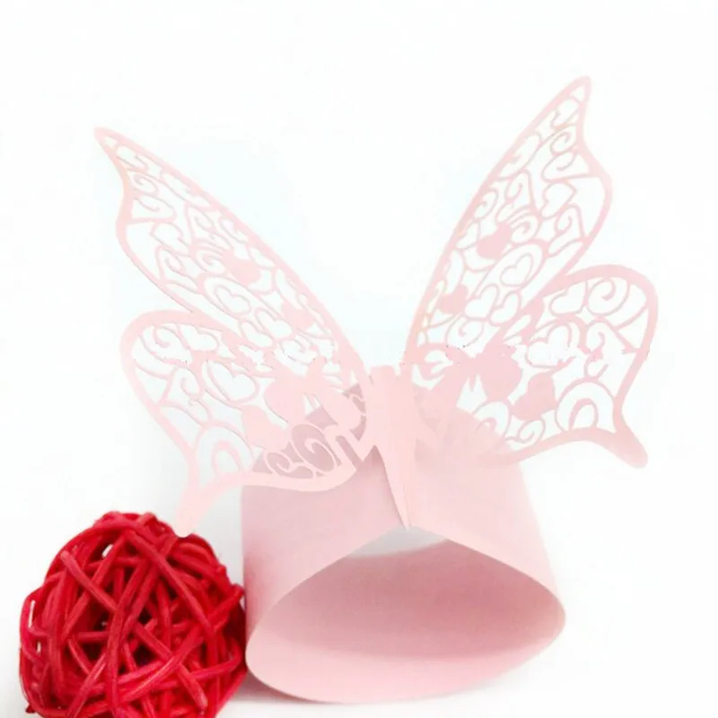 100PCS Butterfly Shape Wedding Napkin Rings Pink/Beige Pearl Paper