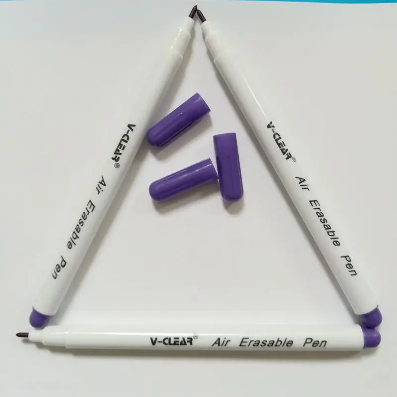 VCLEAR 3 шт. фиолетовая воздушная стираемая ручка с автоматическими чернилами для шитья портного маркера фиолетовая ручка Chaco Ace тканевый маркер для краскиЭто высокотехнологичный продукт, adpots advance technology. Он в основном используется в производстве одежды, обуви, сумок и кожи, чтобы сделать временные отметки.1. Воздушная стираемая ручка может быть написана на любой поверхности, такой как: одежда, обувь, ткань, вышивка крестиком, пэчворк, ручная работа, вышивка, рукоделие, маркировка платья, искусственные цветы и т. д.2. Надпись может исчезнуть автоматически, но также может быть удалена водой или ластиком.3. Время исчезания может варьироваться в зависимости от материала ткани, температуры и влажности окружающей среды.4. Нетоксичные чернила. Чернила прошли испытания EN71-9 и ASTM D-4236.5. Перед использованием, пожалуйста, попробуйте с кусочком напрасной ткани.6. Цвет розовый: 1-7 дней7. Цвет Фиолетовый/Фиолетовый: 2-14 дней