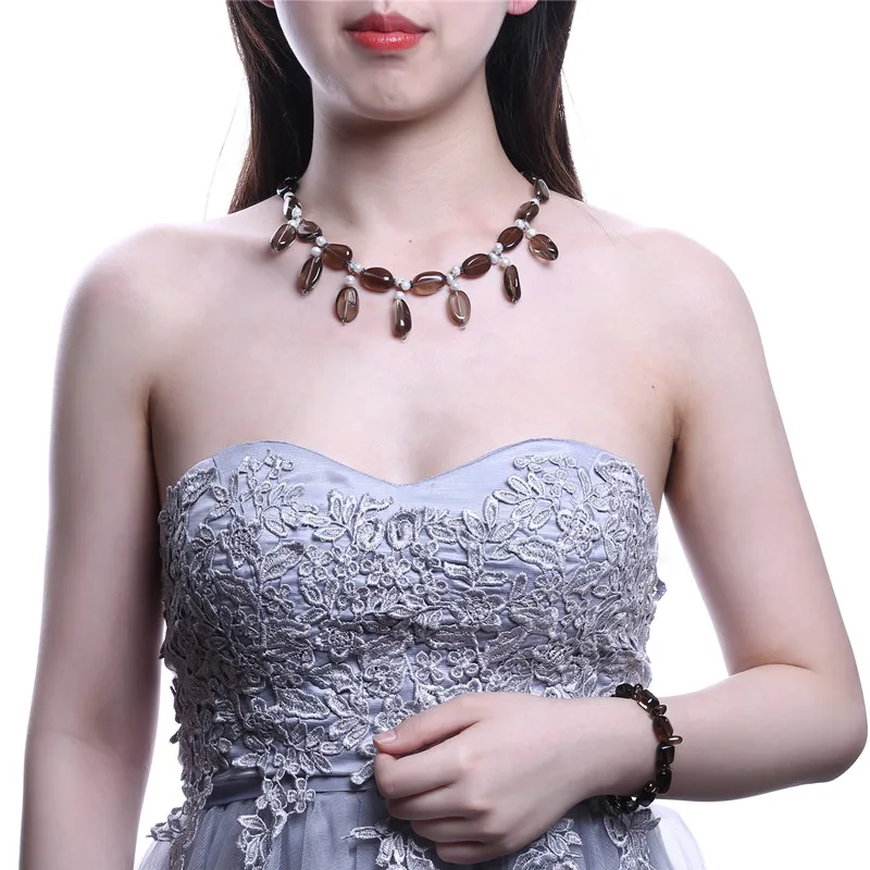 Модное дымчатое кварцевое коричневое кварцевое Ожерелье Браслет Ювелирный Набор 5-6 мм пресноводный жемчуг колье ожерелье ювелирные изделия |