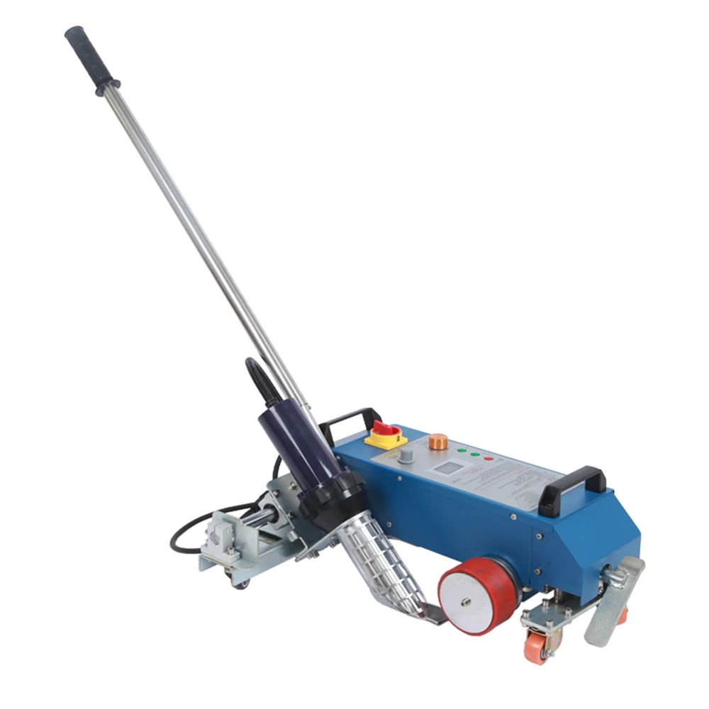 4. Во время сварки, дайте сопло горячего воздуха между двумя частями нахлест. И убедитесь, что насадка горячего воздуха и резиновое колесо ходят по прямой линии. Если нет, пожалуйста, отрегулируйте вручную.