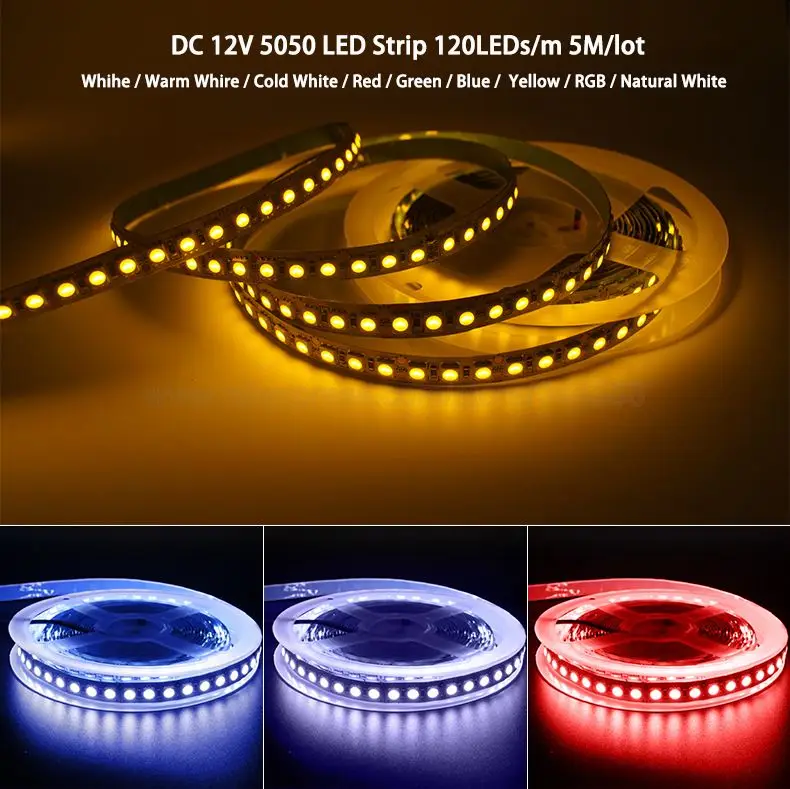 12 В 5050 Светодиодная лента 120 светодиодов/м 5 м светодиодов сверхъяркая Однорядная