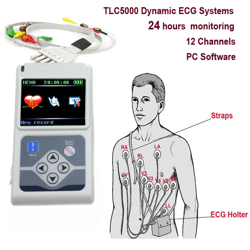 24 часа монитор динамический ECG / EKG системный анализ с программным обеспечением 12 каналов 10 проводов Ambulatory ECG EKG Holter Best