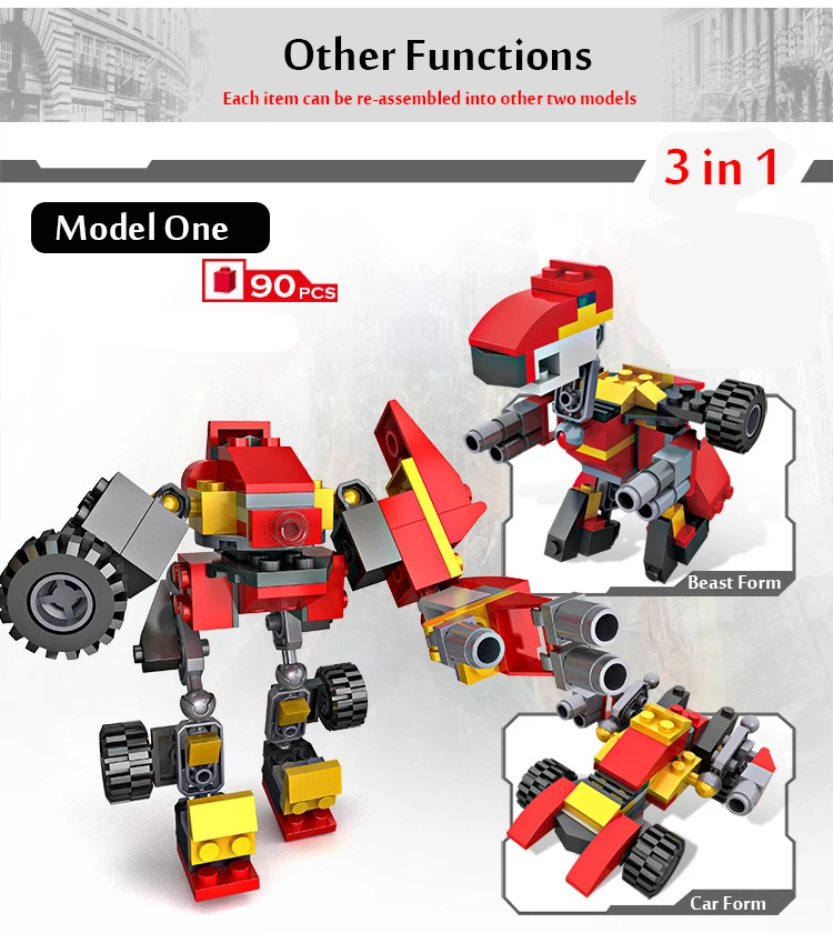 8 в 1 25 форм трансформации блоки роботов 739 шт кирпичи образовательная сборка строительных блоков наборы Развивающие игрушки для детей Особенности: Самая популярная модель от cogo Строительные блоки для ваших детей Лучшие образовательные DIY подарки для ваших детей мальчиков и девочек Рождество, день рождения, любые праздники Описание: Изготовлен из 100% экологически чистого материала В комплект входит: 739 шт кирпичей Руководство по эксплуатации зданий (Руководство по эксплуатации) Примечание:Без оригинальной цветной коробкиЧтобы сэкономить на доставке, мы упакуем его хорошо. Если вам нужна цветная коробка, пожалуйста, свяжитесь с нами И Оплатите стоимость доставки цветной коробки. Спасибо:) Эффект света и огня на некоторых фотографиях только для справки И фактические блоки не могут светиться и гореть