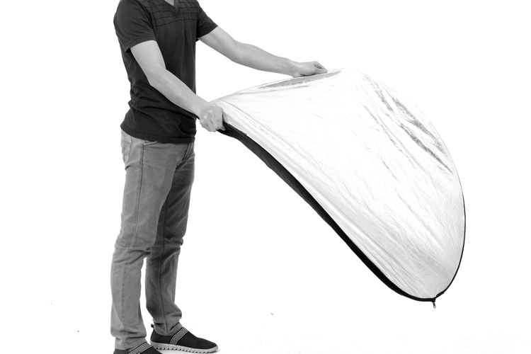 Эта Складная отражательная панель имеет чехол на молнии для отражения света в теневых областях объекта.
