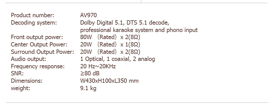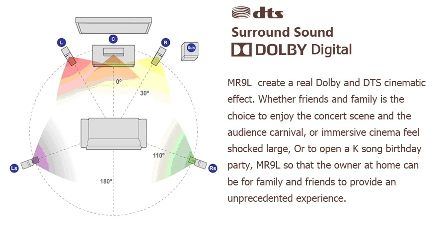 HDTV предлагает потрясающее изображение, но часто не хватает этого фильма, музыки и любителей игр, чтобы насладиться мощным, реалистичным звуком. Домашний кинотеатр CAV MR9L с системой DTS, чтобы обеспечить вам захватывающий объемный звук 5,1.