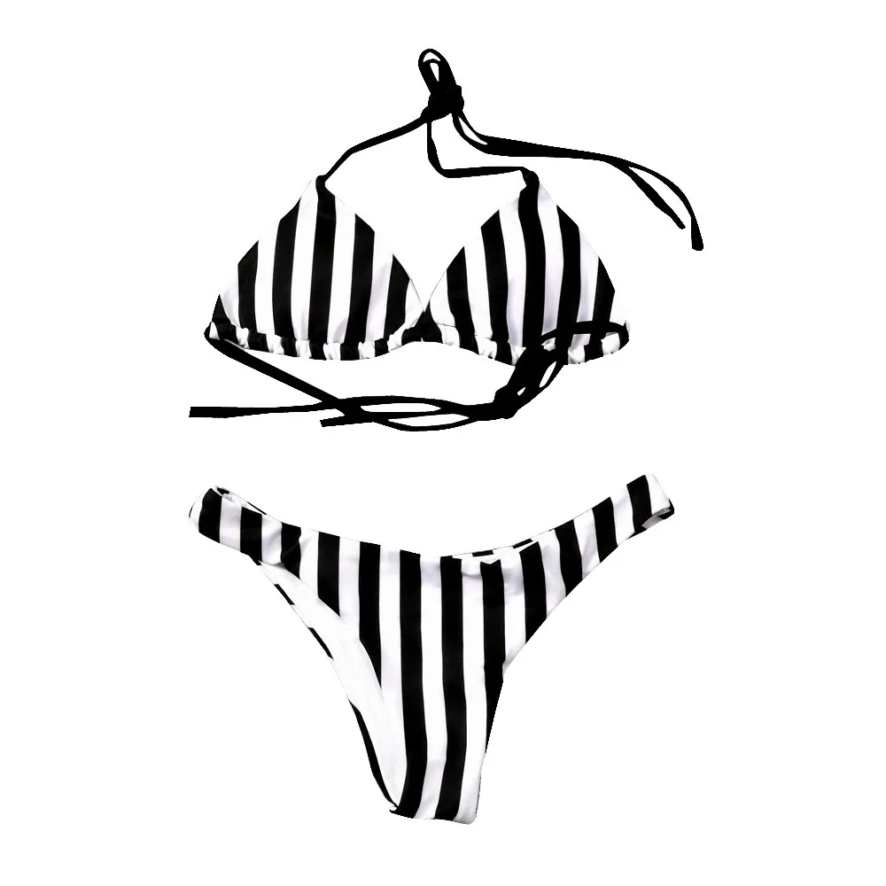 Сексуальный женский полосатый бандажный бикини, набор, пуш-ап, пляжный купальник, купальный костюм