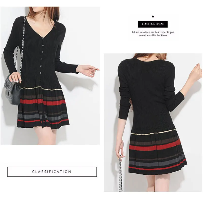 Платье с длинным рукавом размера плюс на весну и зиму 2019, цельнокроеное платье из теплой овечьей шерсти, трикотажное повседневное плиссированное платье в полоску
