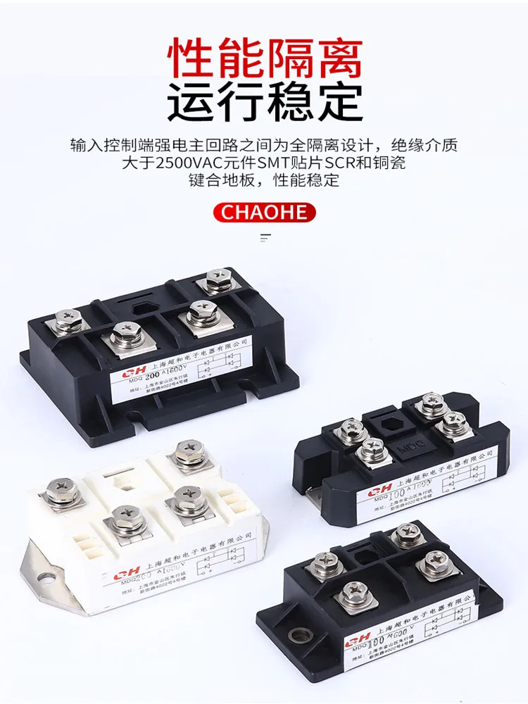 Силовой диодный модуль MDQ-100A предназначен для однофазного полуволнового выпрямления, который имеет четыре диода, соединенные в конфигурации однофазного моста.