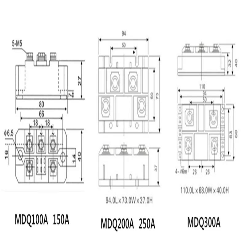 Название продукта: Мостовой выпрямитель; Модель: MDQ-200A; Макс. Средний вперед выпрямленный ток: 200A