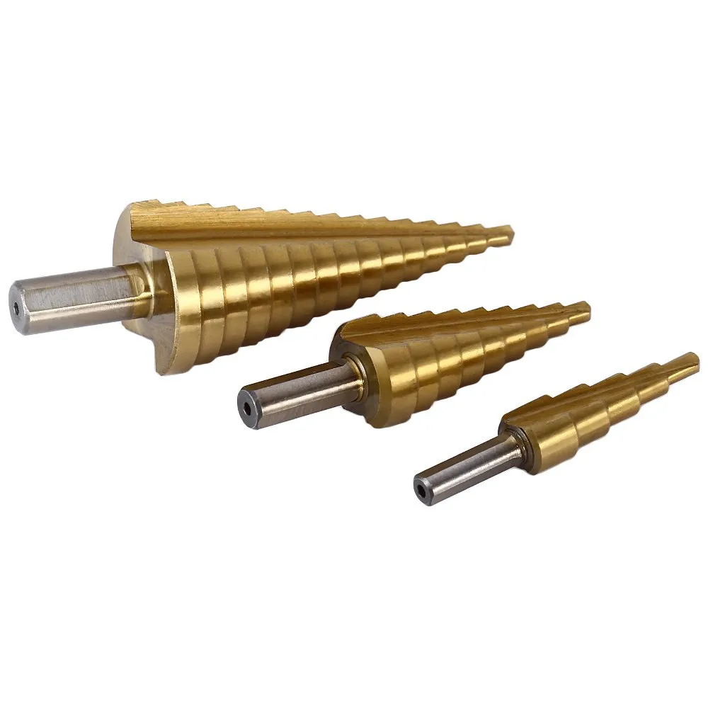 Посылка в комплекте: 3 конусных сверла HSS 4241 с титановым покрытием