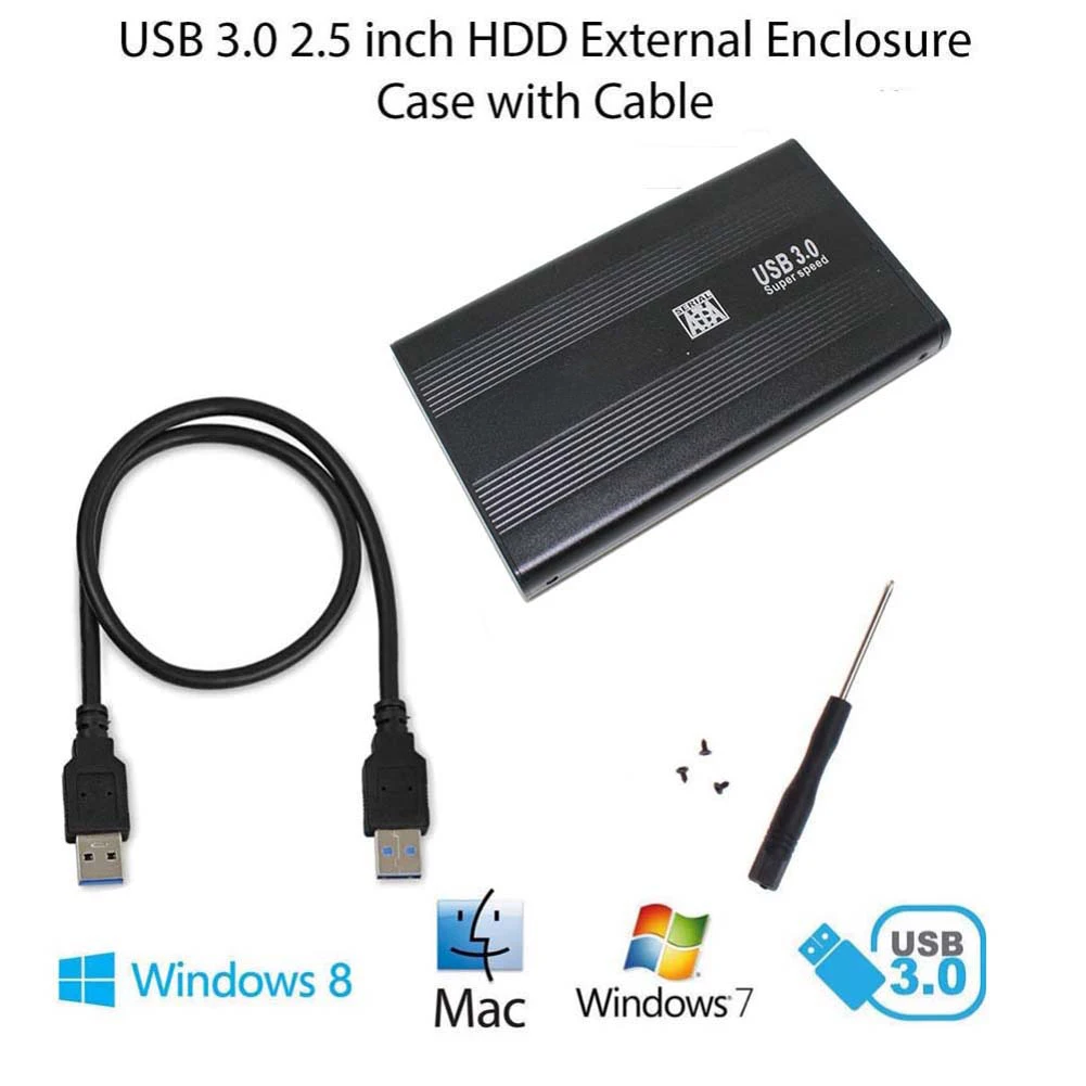 Особенности: Совершенно новое высокое качество. 2,5 "USB 3,0 SATA внешний жесткий диск HD корпус/Чехол Высокопрочный корпус из алюминиевого сплава. Подключи и играй, горячие подключенные и горячие заменяемые функции делают это устройство удобным и простым в использовании. Поддержка жесткого диска ТБ Полностью совместим с USB 3,0 и обратно совместим с USB 2,0, USB1.1. Питание от USB не требуется. Светодиодный индикатор двух цветов. Совместимость с Windows 7/8/98/ME/2000/XP или Mac OS Характеристики: Бренд: ORA'S Материал: алюминиевый сплав Цвет: черный Размер: 127x76x13,5 мм Вес нетто: 96 г/3,4 унции Вес посылки: 106 г/3,7 унций