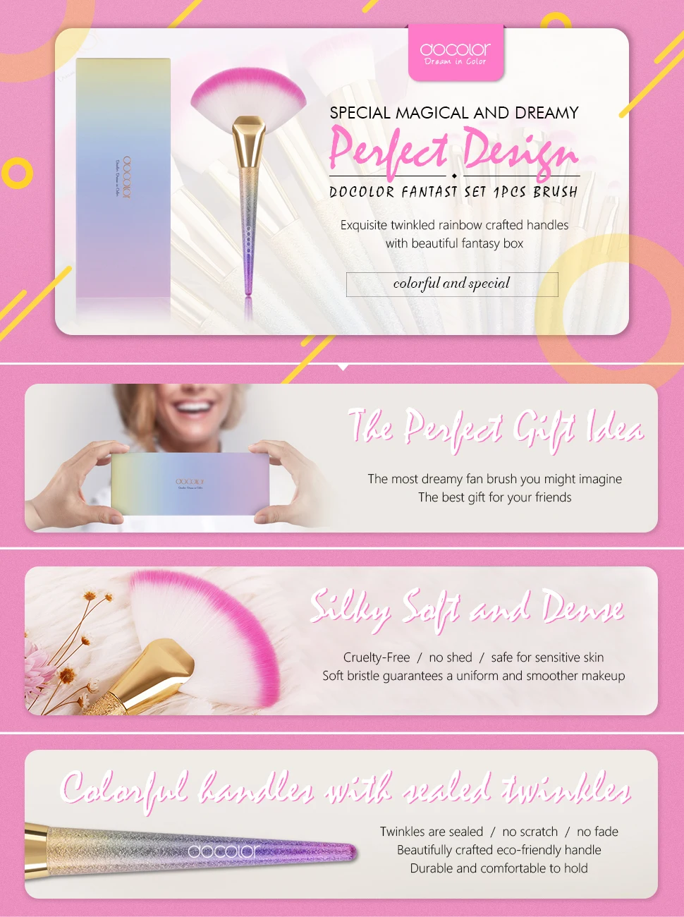 Docolor, большой вентилятор, кисти для макияжа, профессиональная основа, румяна, румяна, пудра, кисть для хайлайтера, кисти для пудры, косметические кисти