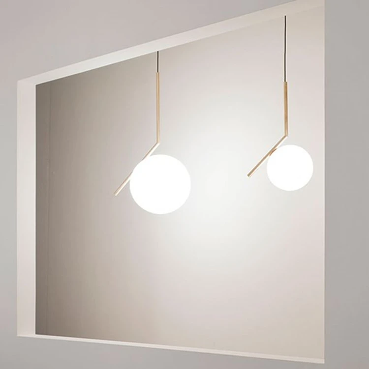 Постсовременный простой молочно-белый стеклянный шар, железный Led E27 подвесной светильник для столовой гостиной бара диаметром 20 см 1146