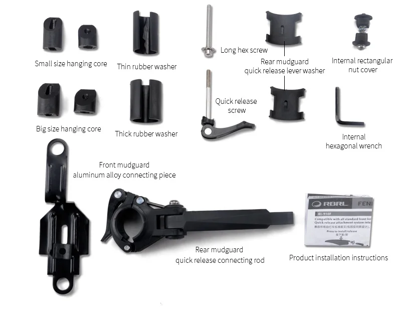 Бренд: RBRL Название: крыло для горного велосипеда Номер модели: RL-910F/R Вес: 204 г Материал: ABS/TPE мягкая резина Размер: Front-66cm * 8 см Rear-55cm * 8,8 см Подходит для: Горный велосипед 24/26/27,5/29 ". Ширина шин: 1,5 "~ 2,35"