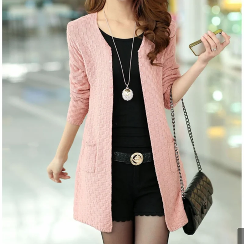 Women Solid Sweater Long Cardigan Fashion Summer Style Long Sleeve Thin Knitted Cardigan Female Sweaters Free Shipping
