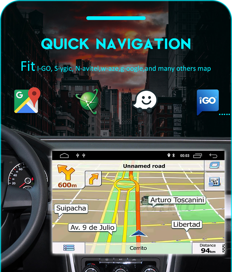 Это радио может устанавливать все типы карт, I-GO,N-avitel, W-aze, s-ygic... и т. Д. Вы можете установить любую карту на радио по вашему желанию. И он также поддерживает google map, вы можете установить приложение google map и связать сеть, затем вы можете использовать его.