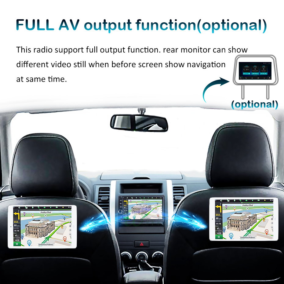 Это Радио имеет полную функцию выхода AV (опционально), эта функция принесет много удовольствия детям и вашей семье, которые находятся на заднем сиденье в долгом путешествии. Они могут смотреть телевизор, фильмы, мультфильмы, видео на Youtube, мВ и другие видео. На рынке большинство торговых радиостанций не имеют функции выхода AV.