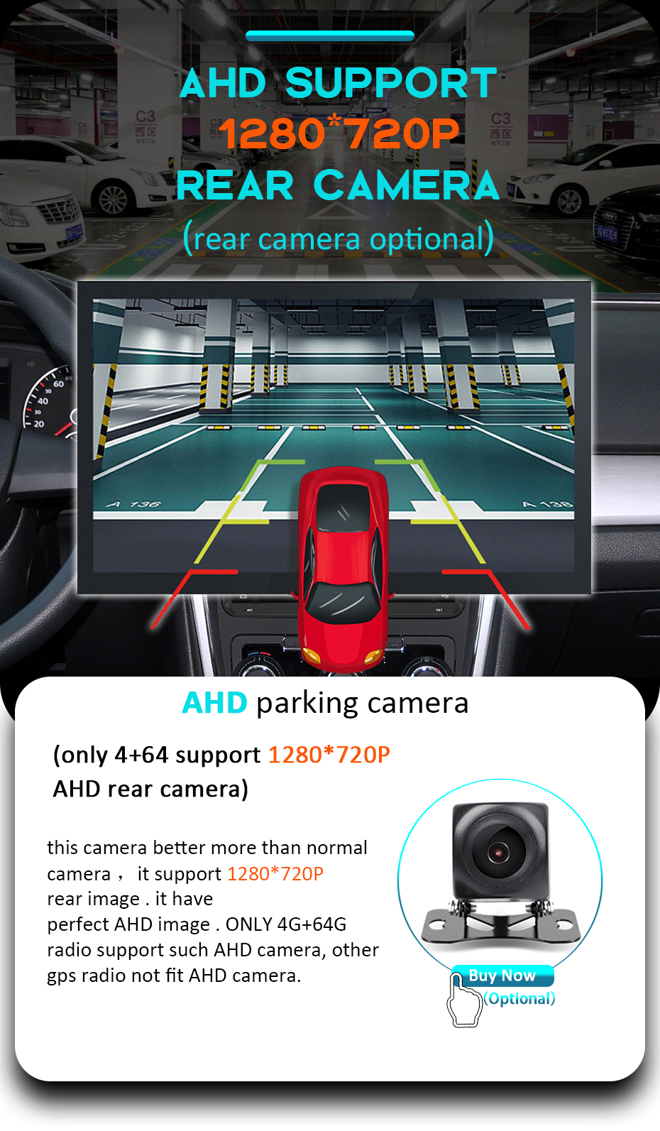 В нашем магазине все 4G + 64G радиоприемники поддерживают AHD 1280*720P камеру, эта камера является дополнительной функцией, если вам это нужно, вы можете нажать ниже фото и купить его вместе с радио