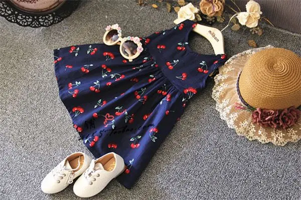 | Fashion Sweet Kids Baby Girls Cherry Dress Skirt!! High quality and Brand new 100% Main Color: AS The Picture New in Fashion Material: CottonAttention plz: If your kid is chubby, we recomend choosing a larger size, thanks. Please kindly refer to your kids actual height and the size chart before buying/bidding. Thanks. Package included: 1x Kids Dress Size Chart: