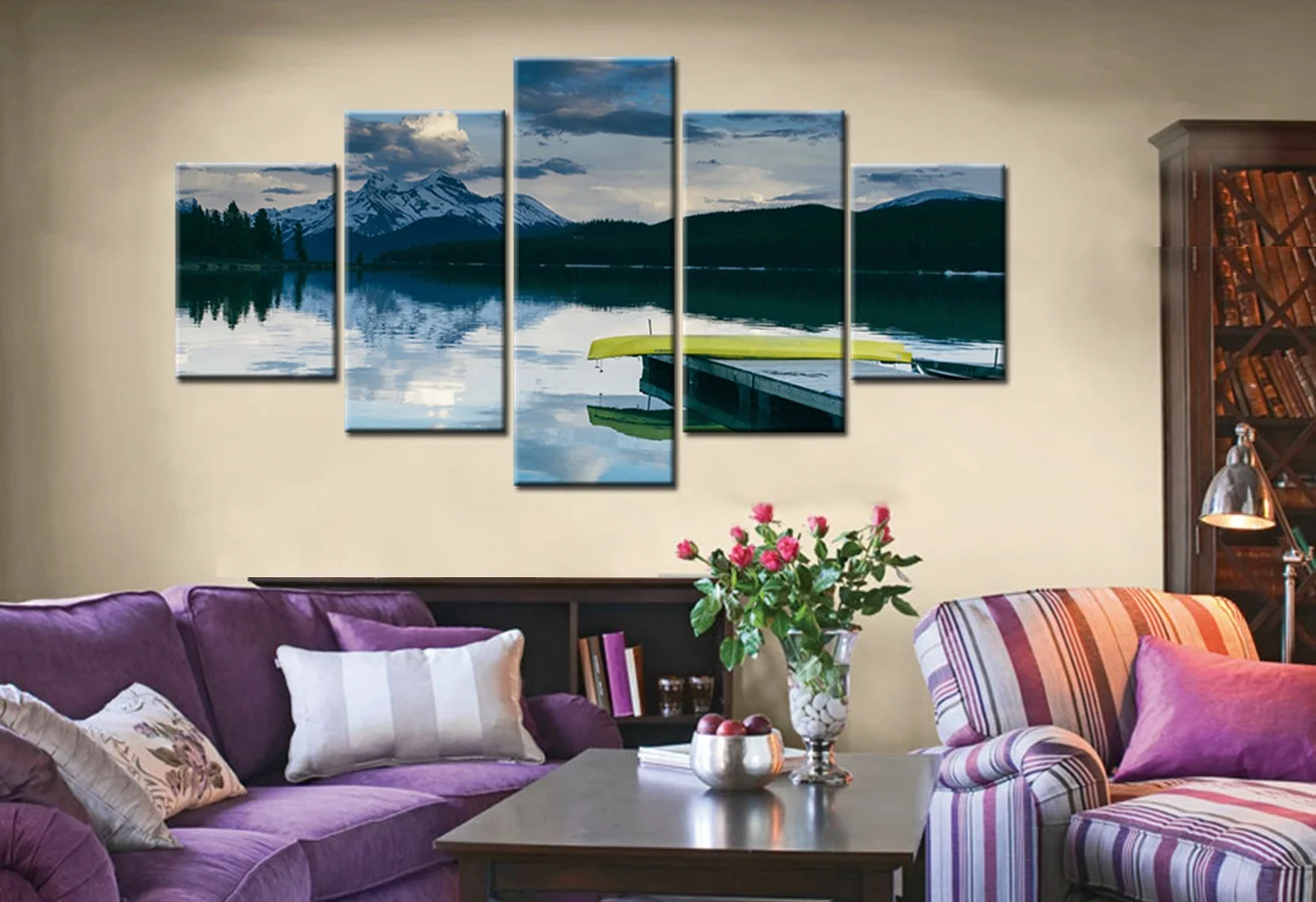 5 шт. HD Печать спокойная морская доска дорога пейзаж настенная живопись холст озеро сторона деревянного моста модные подарки на новоселье