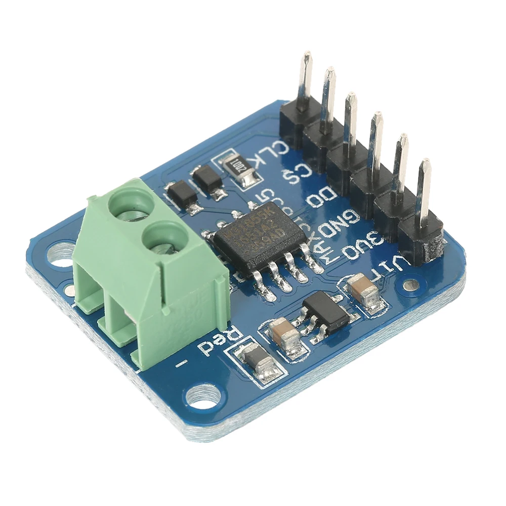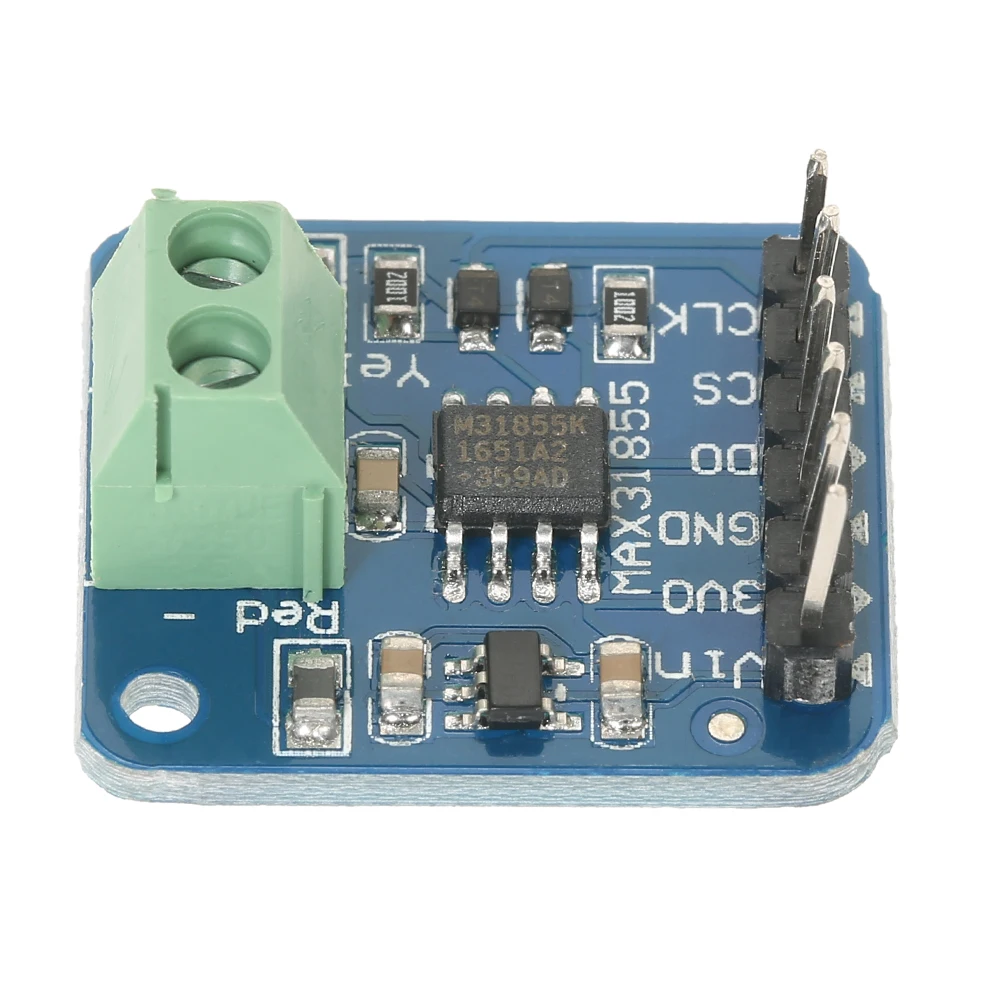 Термопары очень чувствительны, требуя хорошего усилителя с помощью рекомендации о компенсации холода. MAX31855K делает все для вас, и может быть легко соединен с любым микроконтроллером, даже один без аналогового входа. Эта разделительная плата имеет сам чип, 3,3 В регулятор с 10 УФ байпасными конденсаторами и смещение уровня схемы, все собранные и протестированные. Поставляется с 2 контактными клеммными блоками (для подключения к термопаре) и штыревыми соединителями (для подключения к любой макетной плате или печатной плате).