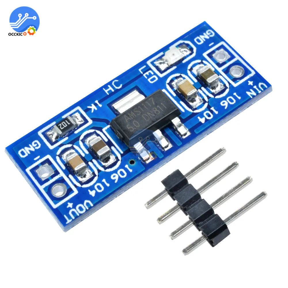 Входное напряжение: 6-12 В (входное напряжение должно быть выше, чем выходное напряжение) Выходное напряжение: 5,0 V Выходной ток: 800 мА (ток нагрузки не должен превышать 800 мА) С индикатором мощности, светильник (красный) Шаг: 2,54 мм Размер модуля: 26 мм (длина) * 11 мм (ширина) Посылка включает в себя: 5x6,0 V-12V постоянного тока до 5V AMS1117-5.0V Питание модуль AMS1117-5.0