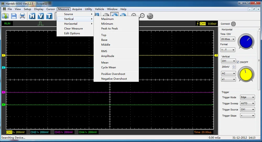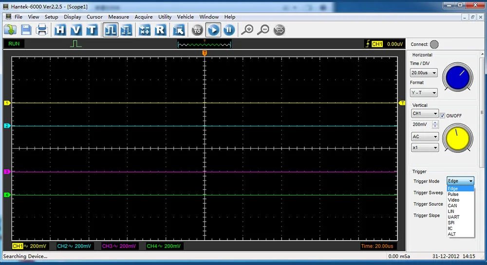 Стандартный оснащены более 80 видов автомобильных функции измерения; Первый диагноз: впускной коллектор вакуум зажигание, бензиновые испарения регулировки клапана вакуумный зажигания, простое зажигание выхлопа, начиная с зажигание выхлопа; Зажигания: начальной и средней школы; Сенсор: расходомер воздуха, распредвал, коленчатый вал, распределитель, лямбда-датчик, положение дроссельной заслонки; Диагностика шины: проверка данных шины CAN, целостность сигнала CAN-шины, Длительное приобретение CAN bus LH, линейный автобус; Производитель: бензин/дизель Подходит для портативных компьютеров, настольных ПК и подходит для мобильных устройств и деловых поездок. Поддерживает WIN10/ WIN8/WIN7 и т. д. Подключи и играй интерфейс USB 2,0, не требует дополнительного источника питания; Отличная функция, более 20 видов функций автоматического измерения, функция проверки/отказа. Умная функция триггера, функция отслеживания динамического курсора, запись формы волн и функция воспроизведения. Хороший Механический дизайн небольшого размера, удобно носить с собой. Внешний чехол изготовлен из того же материала, что и анодированный алюминий для iPad. Обладает отличной термостойкостью и абразивной стойкостью и красивым внешним видом. Твердость поверхности из алюминиевого сплава значительно улучшается. Осциллограф с 4 изолированными каналами, частота дискретизации в реальном времени 1 Гвыб/с, 2 мВ в-10 В/дел, высокая чувствительность на входе и большой диапазон ввода, высокая пропускная способность 70 МГц, Данные о форме волны могут быть высланы в EXCEL,BMP,JPG. Сигналов в среднем, тускнеющее свечение, контроль легкости, реверс, добавление, убавление, умножение, разделите, X-Y дисплей. Анализатор спектра FFT Один компьютер может подключаться к нескольким осциллографам, легко расширять количество каналов. Предоставление дополнительной библиотеки разработки, библиотеки скоб; Предоставление Labview \ VB \ VC \ QT образец разработки