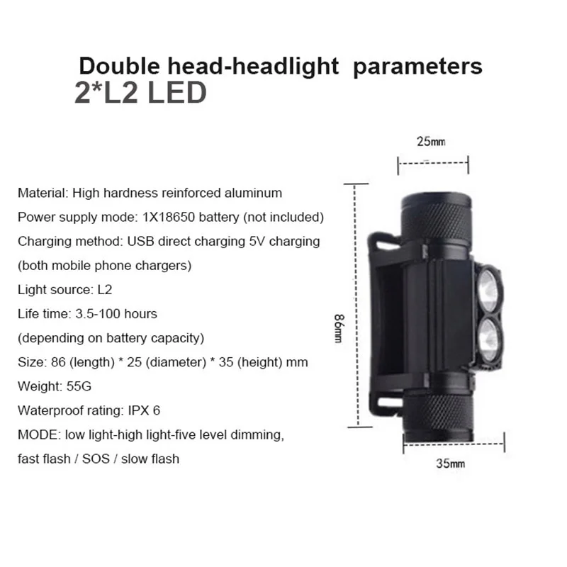 2xL2 светодиодный No B : L2 * 2 светодиодный фонарь + зарядный кабель