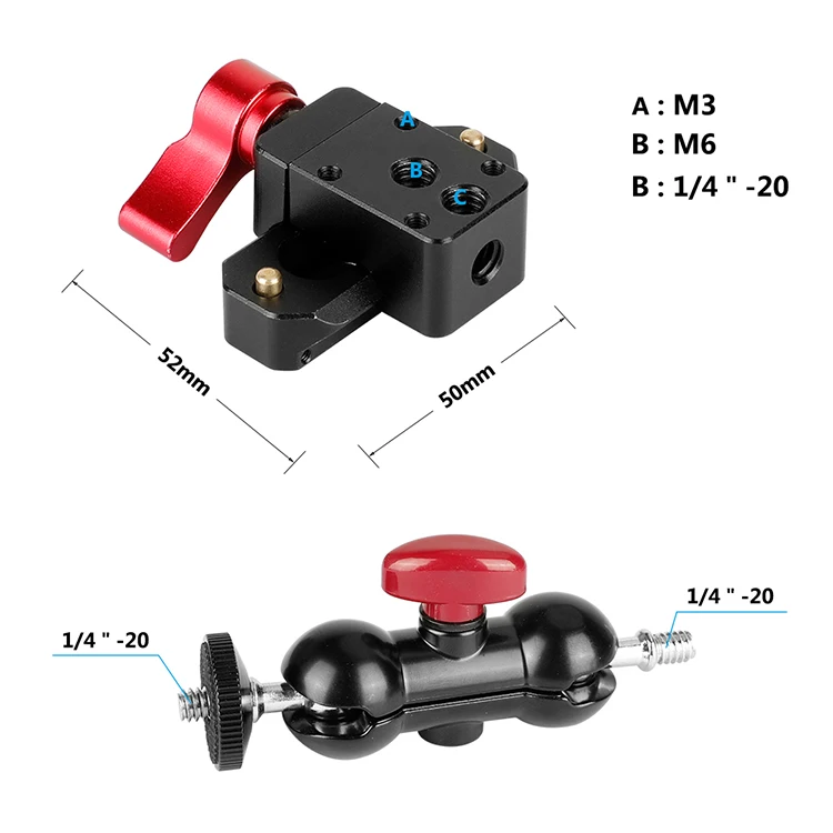 Основные характеристики продукта • Сделано с помощью прецизионного ЧПУ • используется с рельсовой системой NATO • мини-шаровая Головка 360 ° • крепление 1/4 "-20 • Красная винтовая гайка Описание продукта • Используйте эту мини-шаровую головку прикрепите экипировку 1/4"-20 к уже существующей железнодорожной системе NATO. • Обеспечивают большую универсальность для позиционирования аксессуаров, таких как мониторы, видоискатели, цифровые регистраторы и фонари камеры Вес нетто: 118 г комплектация: 1 зажим для рельсов Swat (красная гайка) 1 x рельс безопасности (5 см) 1x360 ° Мини шаровая Головка