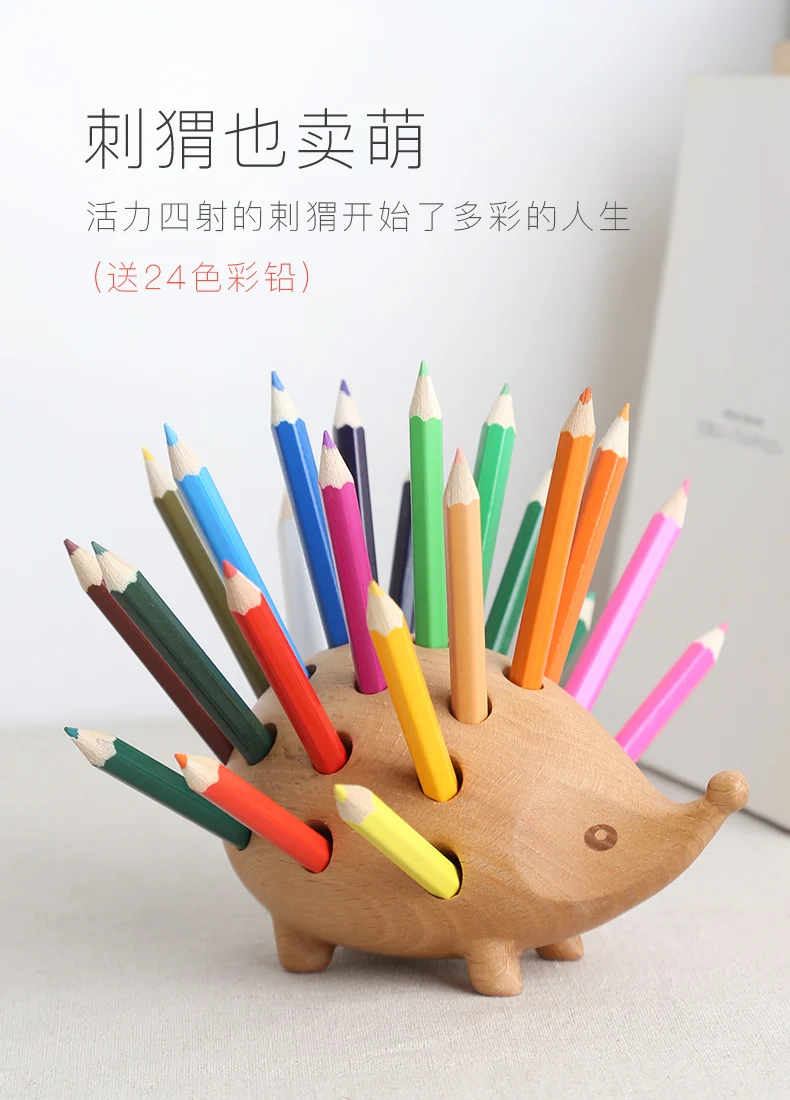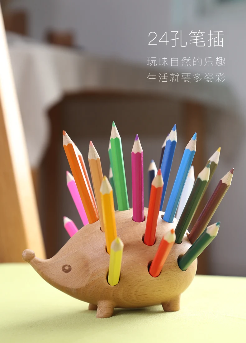 Название продукта: Мультяшный карандаш-держатель в виде Ёжика, деревянная коробка в виде животного, офисное украшение, милый простой Забавный дизайн, подарки на день рождения для детей