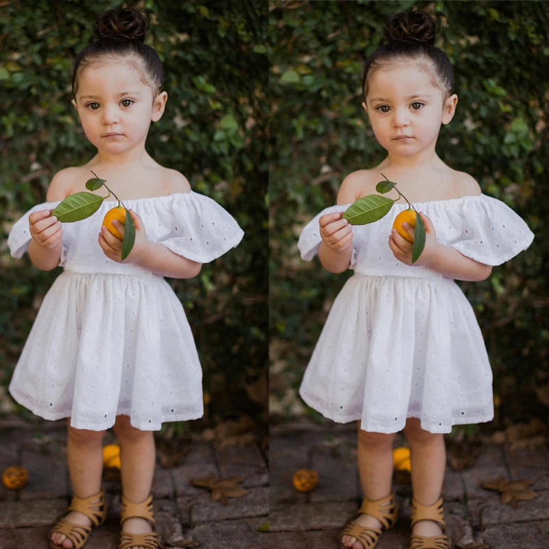 100% новый и высокое качество Очаровательное белое платье с открытыми плечами для маленьких девочек Модный дизайн; Милая одежда для дома Цвет: белый Материал: Смешанный хлопок Посылка: 1 белое платье Размеры таблицей: Обратите внимание: если ваш ребенок пухленький, мы рекомендуем выбрать больший размер, спасибо.