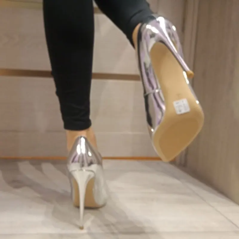 GENSHUO/Новинка 2018 г. Демисезонные женские туфли-лодочки пикантные серебряные туфли на высоком каблуке для женщин, модные роскошные свадебные вечерние туфли размер 35-42