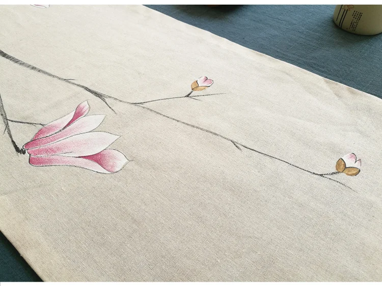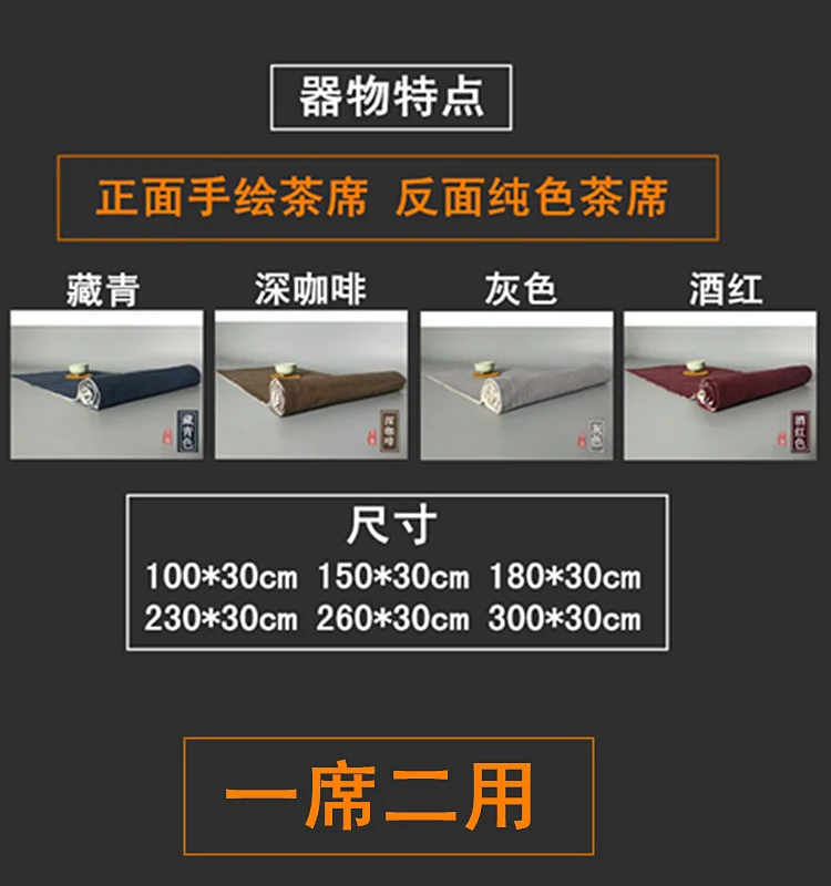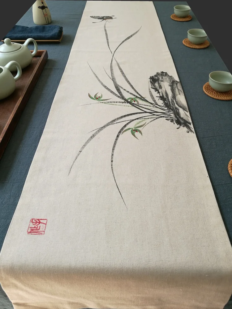 Двухслойный чайный столик, лен, ручная роспись, ткань, чайный коврик, хлопок, лен, настольный флаг, большая чайная церемония, чайный флаг на заказ