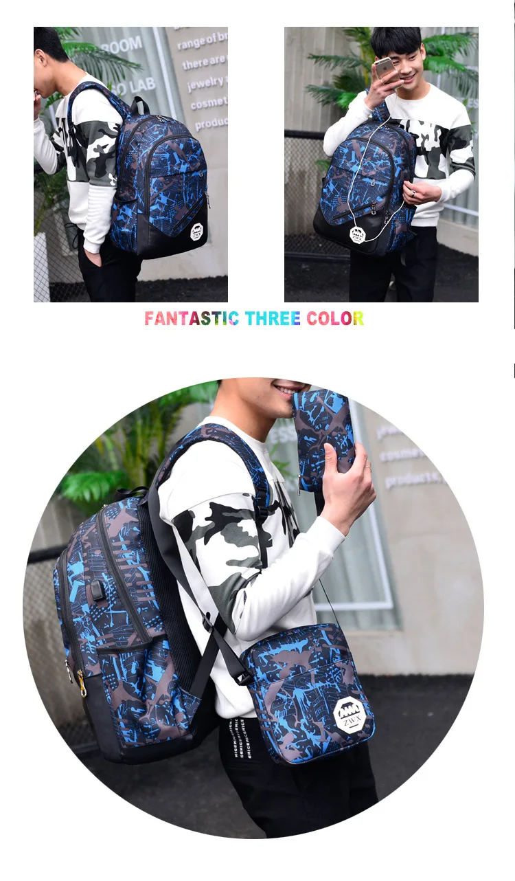 Новые вещи 3 сумки Mochila Hombre 3D принт 16 дюймов рюкзаки для подростков школьные