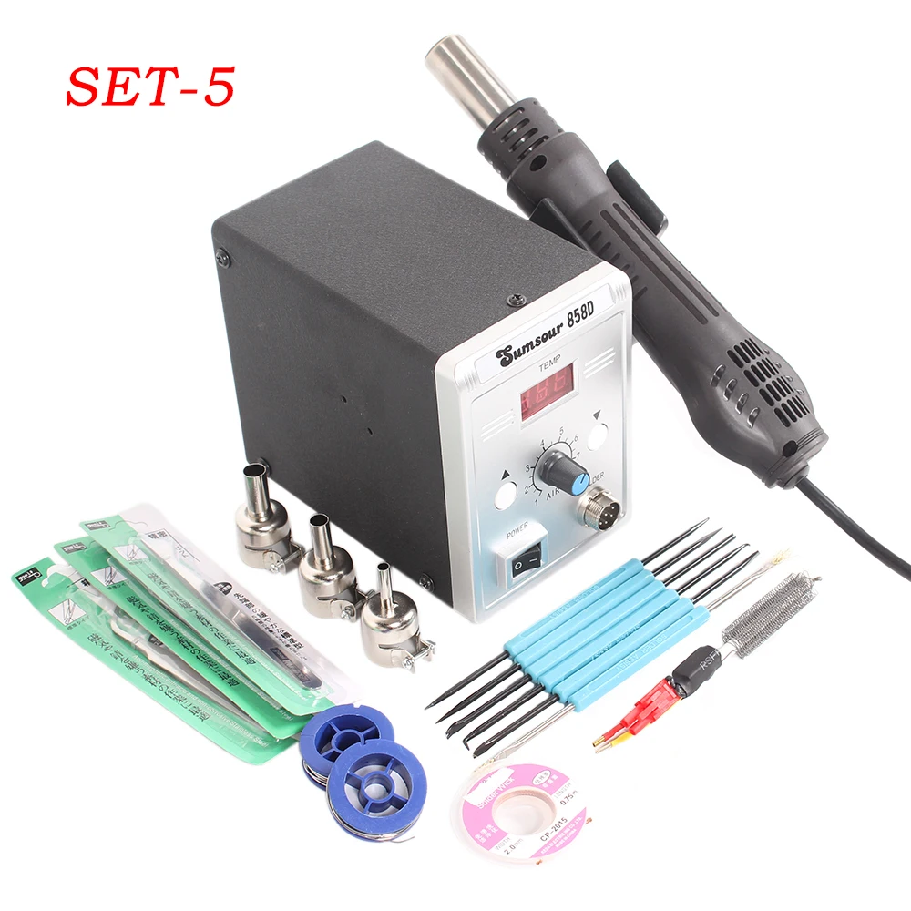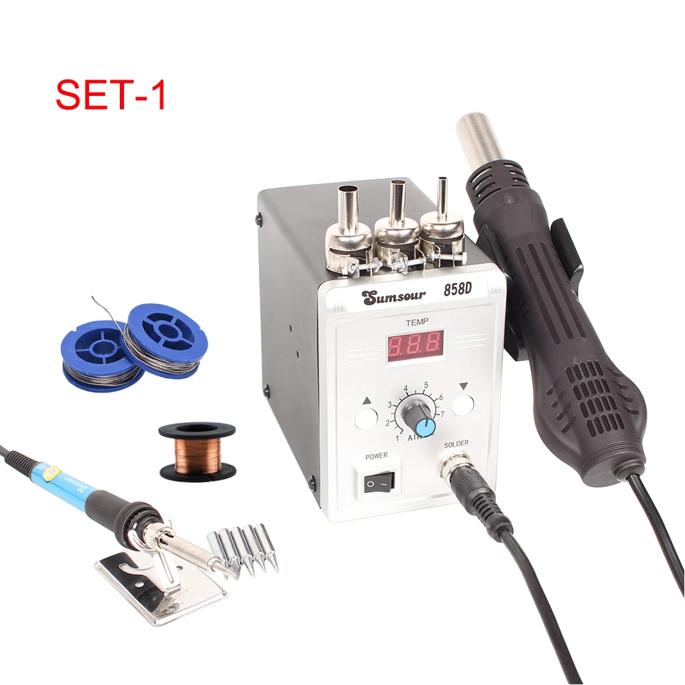1 шт. 858D(3 насадки + 1 ручка воздушного пистолета + 1 кабель питания + 1 IC съемник)