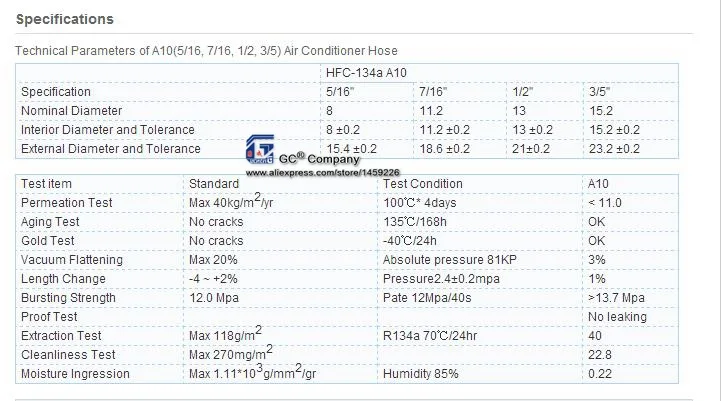 Тонкостенный A10 R134a R12 A/C Шланг (5/16 ''#6)
