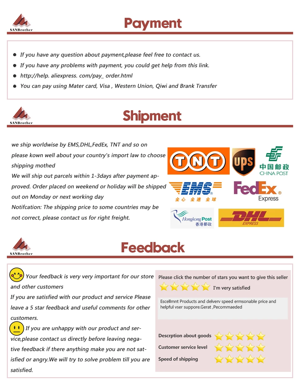 Магазина SANJIUPrinter 3D Research Center Store работает с 02.08.2016. его рейтинг составлет 96.64 баллов из 100. В избранное добавили 1658 покупателя. Средний рейтинг торваров продавца 4.9 в продаже представленно 554 наименований товаров, успешно доставлено 8061 заказов. 1696 покупателей оставили отзывы о продавце.